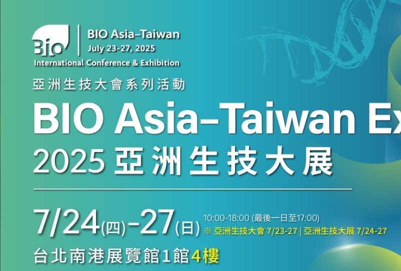 2025年亞洲生技大展~歡迎蒞臨指教 展覽日期2025年7月24日(四)~至7月27日(日),共4天 展覽時間10:00~18:00(最後一日於17:00閉展) 展覽地點台北南港展覽館1館4樓 展覽地址台北市南港區經貿二路1號4樓 展覽攤位近期公布 展覽網址https://expo.bioasiataiwan.com/(https://expo.bioasiataiwan.com/)...